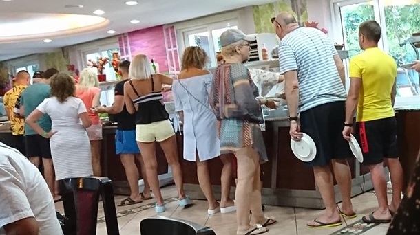 "Ну и про олинклюзив. Здесь тоже абсолютно ничего не изменилось. И даже "положи мне мяса без картошки, я тебе сказал" - тоже за один ужин услышала трижды. Напомню - в отеле почти одни украинцы, немного поляков", - отметила туристка и показала фото, где видно, как украинцы нарушают социальную дистанцию.