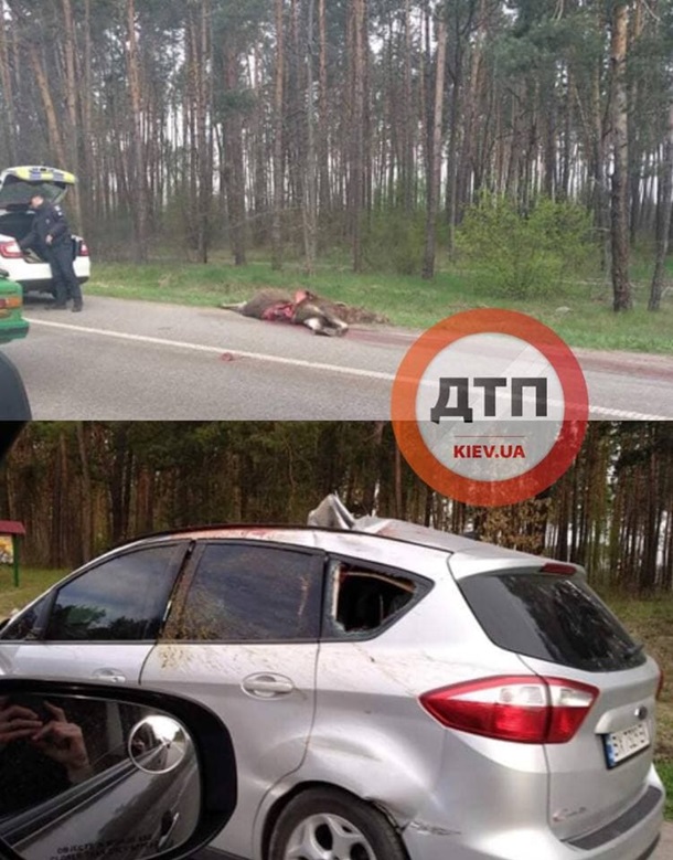 На Житомирській трасі за 93 кілометри від Києва сьогодні, 30 квітня, автомобіль збив лося. Про це повідомляє телеграм-канал ДТП.kiev.ua.