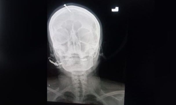 Медики стверджують, що цвях 5 см завдовжки пробив тільки лобову кістку і дивом не зачепив мозок.