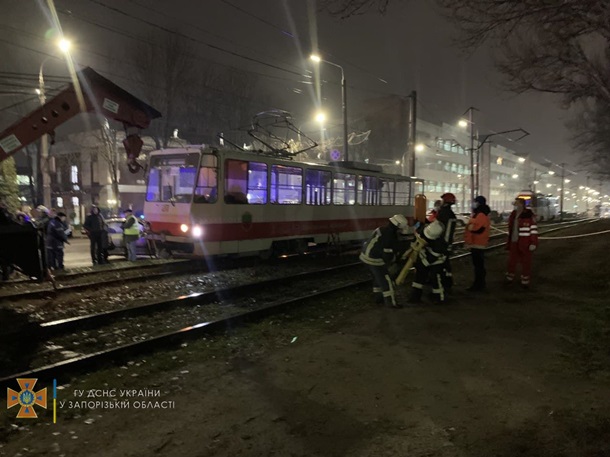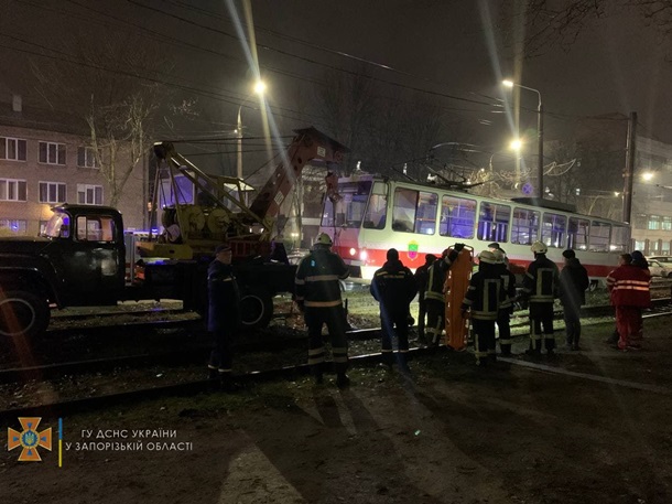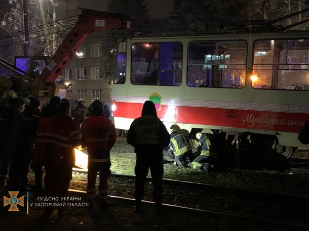 Співробітники КП міського електротранспорту Запоріжжяелектронтранс за допомогою спецавтомобіля підняли трамвай. Рятувальники розблокували тіло чоловіка без ознак життя. Особисті дані загиблого встановлюються.