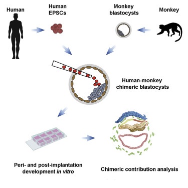 На шостий день існування ембріонів мавп Macaca fascicularis, що розвиваються ex vivo, автори ввели в кожен з них по 25 людських стовбурових клітин, які можуть брати участь в утворенні як ембріональних, так і позаембріональних тканин.