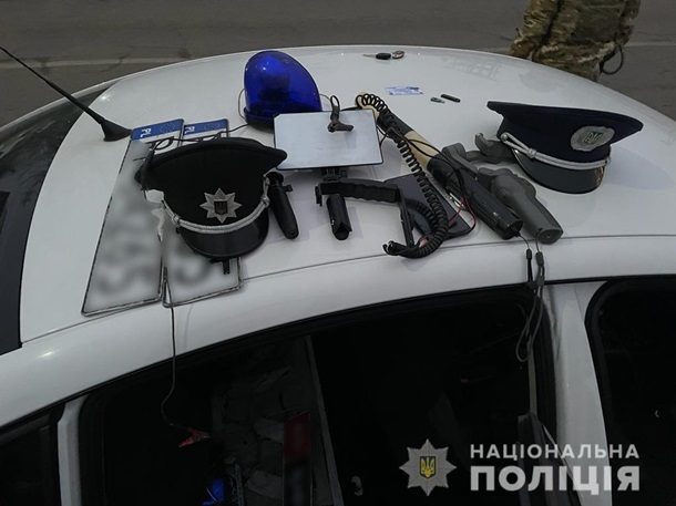 У машині блогера виявили та вилучили газові балончики, елементи поліцейського форменого одягу та проблискові маячки, автономери іноземної реєстрації.