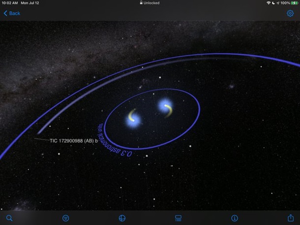 Астрономи спостерігали, як TIC 172900988b проходила через свою головну зірку, а через п'ять днів проходила через другу зірку. При цьому подвійна система затьмарювала себе на 20-денній орбіті.