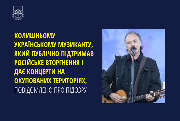 Колишньому українському, а нині російському музиканту, лідерові відомого поп-рок-гурту повідомлено про підозру. Про це повідомила пресслужба Офісу генерального прокурора в четвер, 18 квітня.