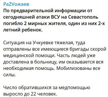 Крымский ветер повідомляє, що під Севастополем сталося нештатне падіння російських ракет, що спричинило поранення понад 20 людей та загибель ще двох осіб.