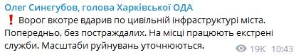 Внаслідок атаки постраждала цивільна інфраструктура міста, інформації про поранених немає.