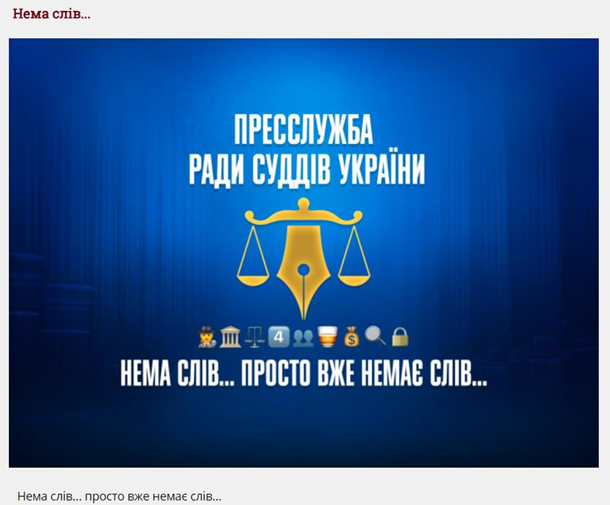 У пресслужбі Ради суддів уточнили Українській правді, що таким чином відреагували на новину про викриття чотирьох суддів столичного апеляційного суду, яких спіймали на хабарі. Там додали, що "немає не лише слів, а й сил".