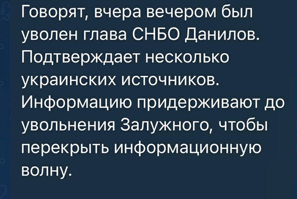 Окремі Telegram-канали поширили інформацію про нібито звільнення Данілова з посади секретаря РНБО.