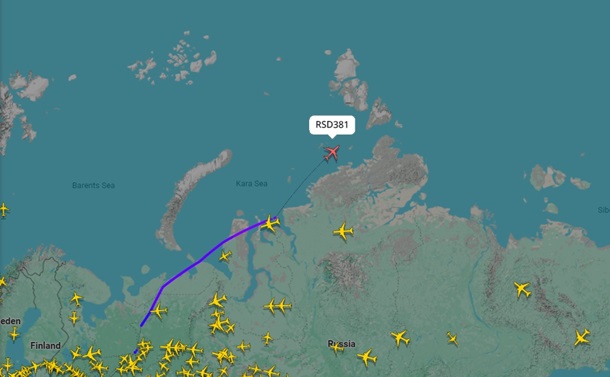 Зараз рейс RSD 381 пролітає вздовж російського узбережжя Північного Льодовитого океану. Його не супроводжує жоден інший ідентифікований літак.