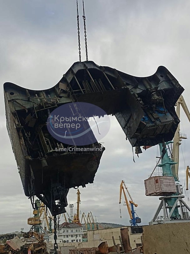 Затонулий корабель витягують частинами, зокрема, російські окупанти вже дістали з дна уламок корми.