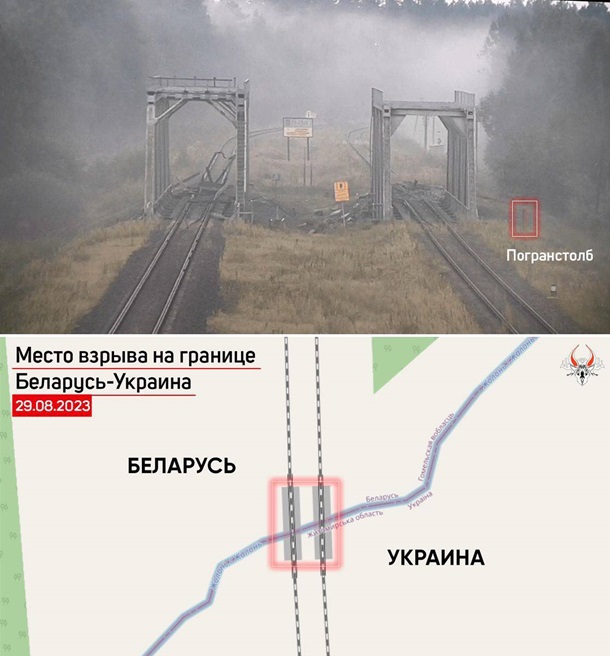 При цьому як доказ додається фото, на якому видно зруйноване залізничне полотно на мосту нібито на самому кордоні Білорусі з Україною. На фото можна побачити навіть прикордонний стовп РБ. Саме фото зроблено з території Білорусі.