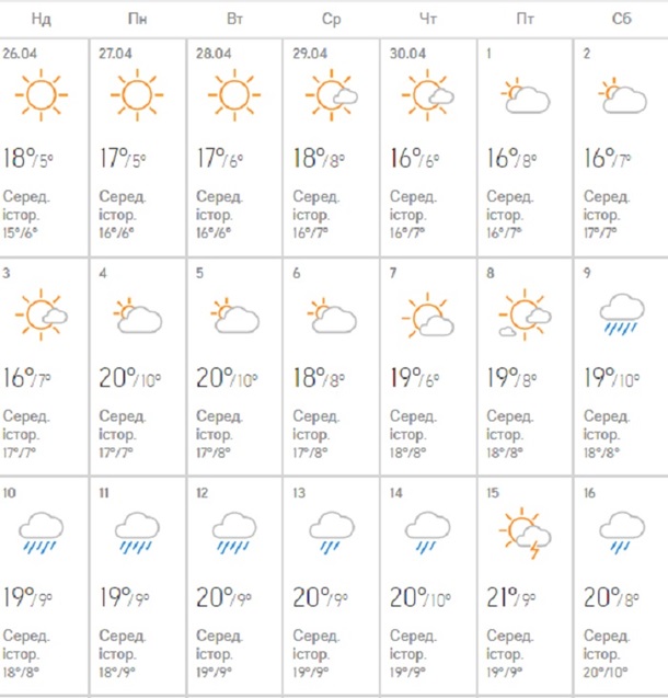 Народный синоптик Леонида Горбань отмечает, что несмотря на прохладную погоду в конце апреля, май станет аномально жарким. Уже в первых числах месяца, в том числе на День солидарности трудящихся и предстоящие выходные, воздух прогреется до 16-20 градусов.