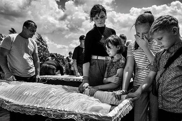 Як уточнив фотограф із Данії Ян Граруп, дівчат у Добропіллі поховала їх мати, лікар-хірург Краматорської лікарні Ольга Аксенченко.