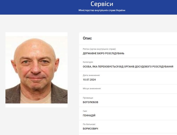 Державне бюро розслідувань (ДБР) оголосило у розшук колишнього співвласника Приватбанку Геннадія Боголюбова. Про це свідчать дані на сайті МВС у п’ятницю, 27 вересня.