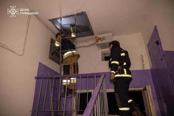 "О 21:30 зафіксовано влучання в багатоповерховий житловий будинок у Зарічному районі", - написав Артем Кобзар.