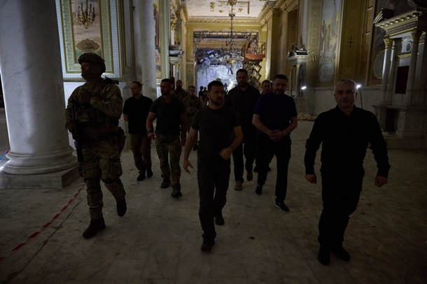 Під час робочої поїздки на Одещину президент Володимир Зеленський оглянув руйнування Спасо-Преображенського кафедрального собору, завдані внаслідок нещодавнього масованого російського обстрілу Одеси. Про це повідомила пресслужба Офісу президента в четвер, 27 липня.