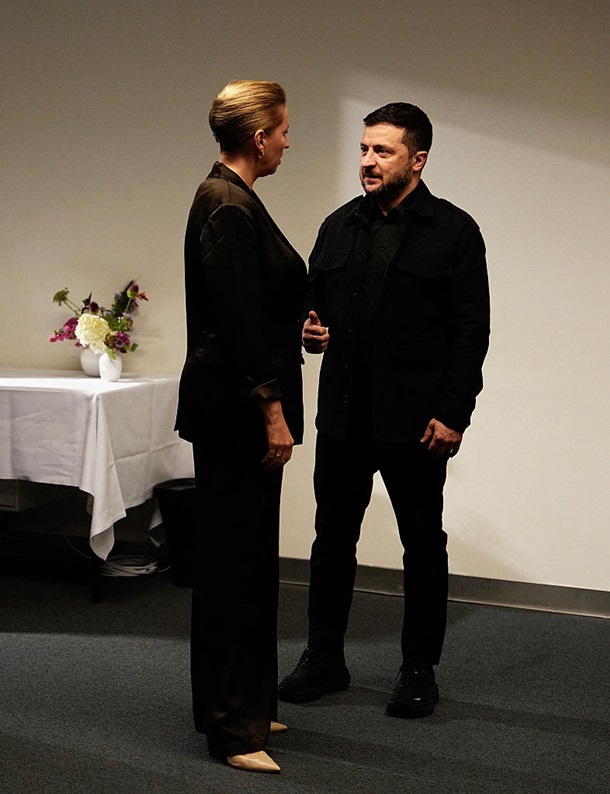 Згідно з опублікованими в Мережі фото, Зеленський проводить двосторонню зустріч з прем'єр-міністром Данії Метте Фредеріксен.
